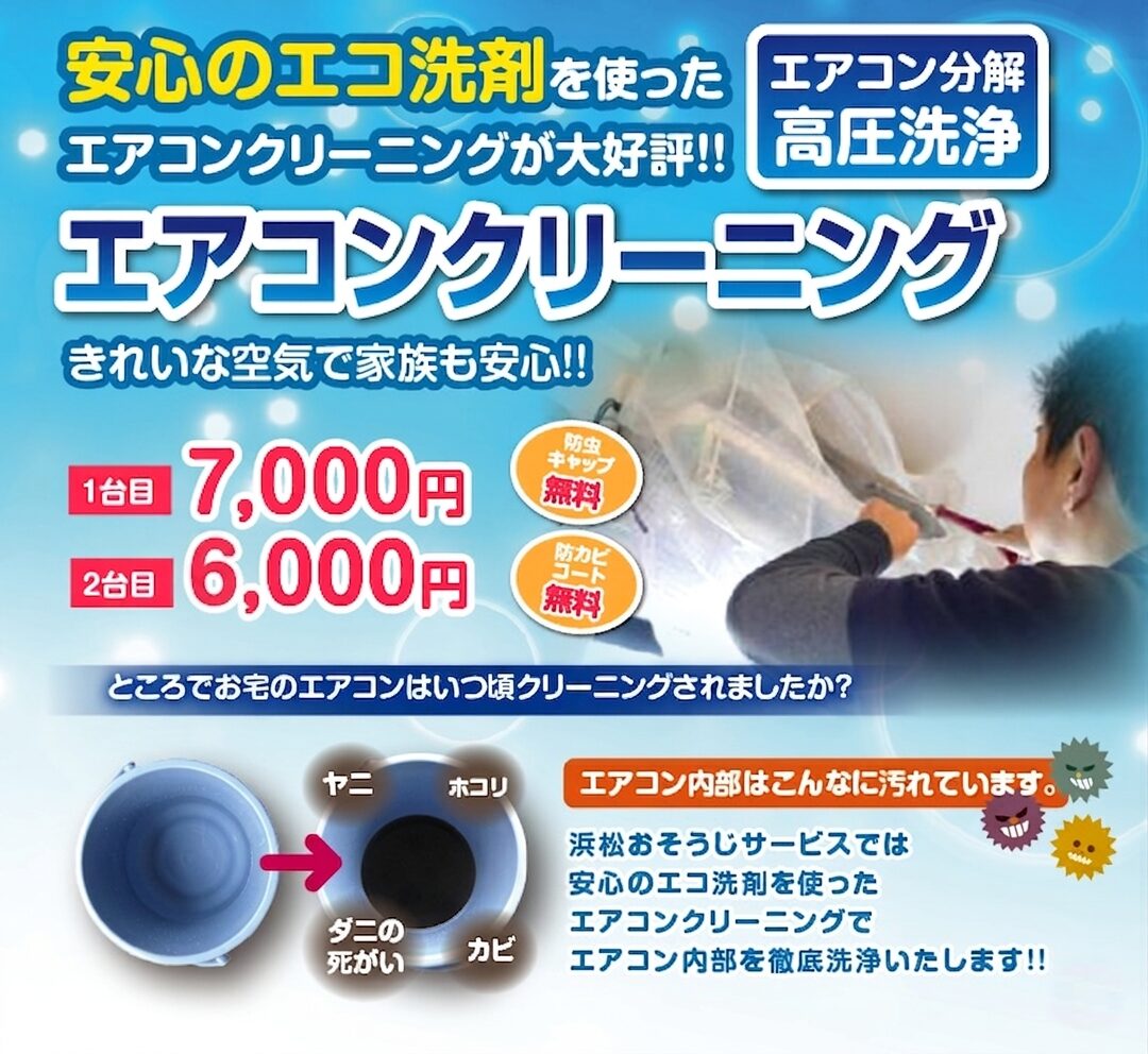 浜松市のハウスクリーニング、エアコンクリーニングなら